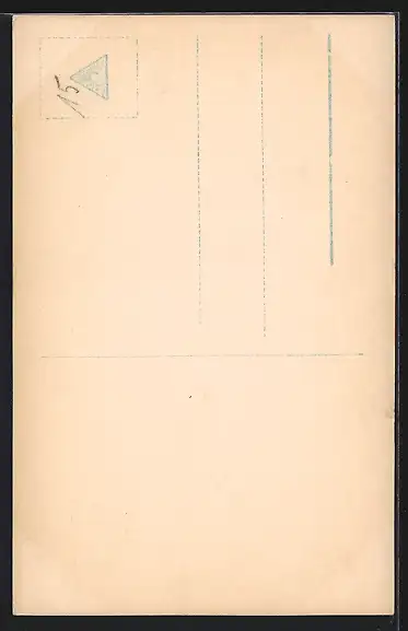 Personenbezogene Daten auf der Rückseite der Karte wurden durch blauen Textmarker unkenntlich gemacht. Die blauen Stellen sind auf die Vorderseite durchgeweicht und wirken sich negativ auf das Postkartenfoto aus