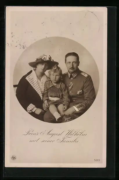 AK Prinz August Wilhelm von Preussen in Uniform und Orden mit seiner Familie, gerahmte Ansicht