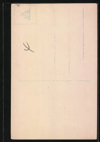 Personenbezogene Daten auf der Rückseite der Karte wurden durch blauen Textmarker unkenntlich gemacht. Die blauen Stellen sind auf die Vorderseite durchgeweicht und wirken sich negativ auf das Postkartenfoto aus