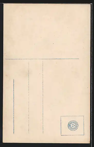 Personenbezogene Daten auf der Rückseite der Karte wurden durch blauen Textmarker unkenntlich gemacht. Die blauen Stellen sind auf die Vorderseite durchgeweicht und wirken sich negativ auf das Postkartenfoto aus