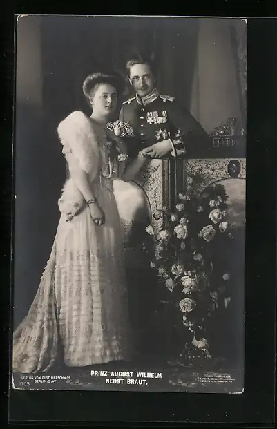 AK Prinz August Wilhelm von Preussen nebst Braut mit Fuchspelzstola