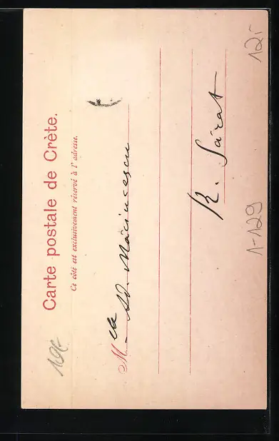 Personenbezogene Daten auf der Rückseite der Karte wurden durch blauen Textmarker unkenntlich gemacht. Die blauen Stellen sind auf die Vorderseite durchgeweicht und wirken sich negativ auf das Postkartenfoto aus