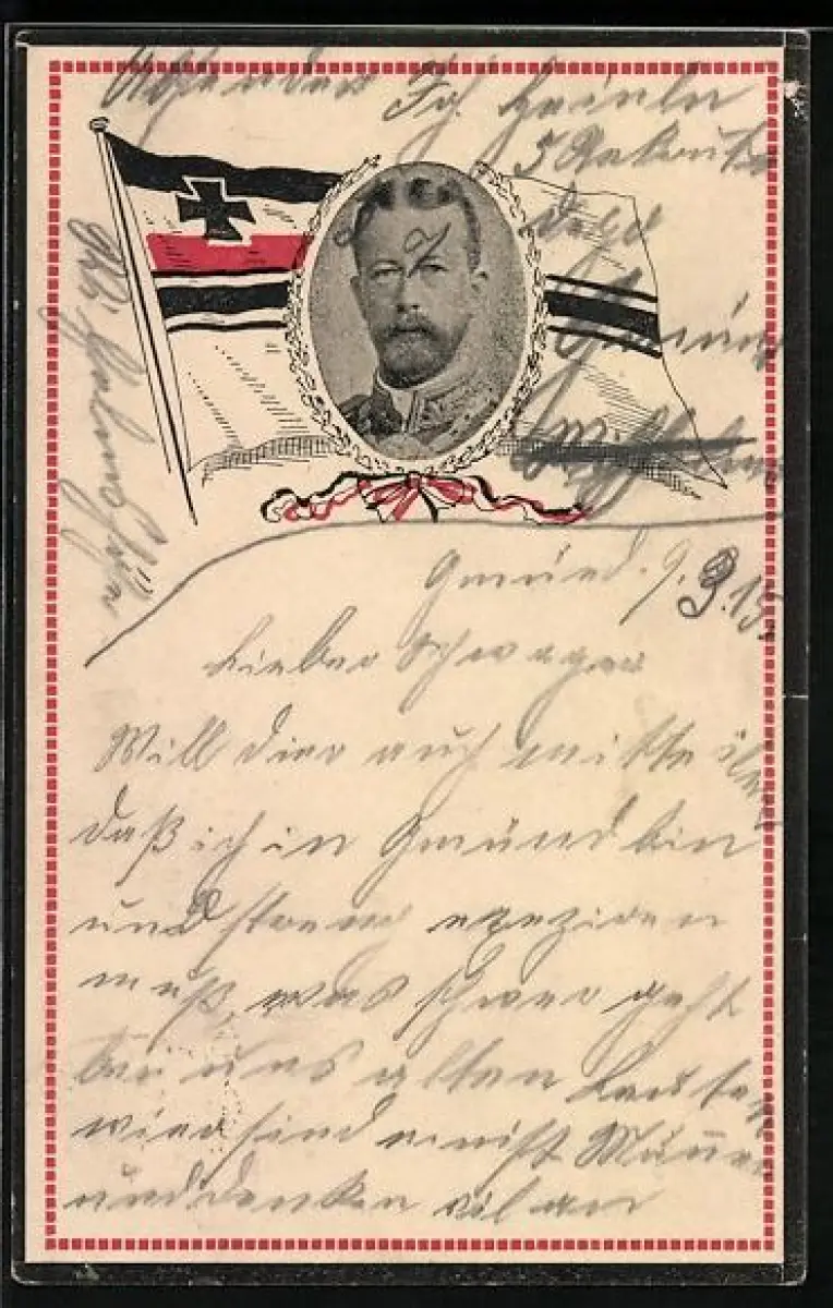AK Prinz Heinrich von Preussen in Flagge, Passepartout