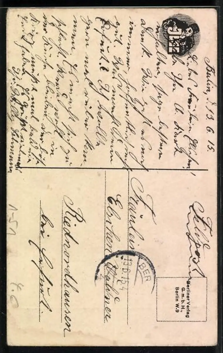 gelaufen 1915, Eckknicke li. unten u. re., guter Zustand