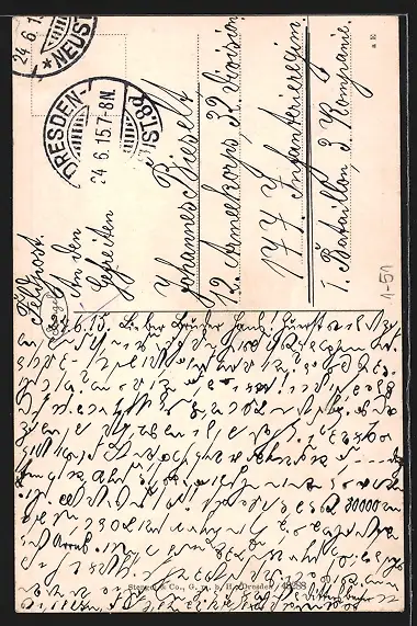 alte Ansichtskarte, gelaufen 1915, Eckknick li. unten, guter Zustand