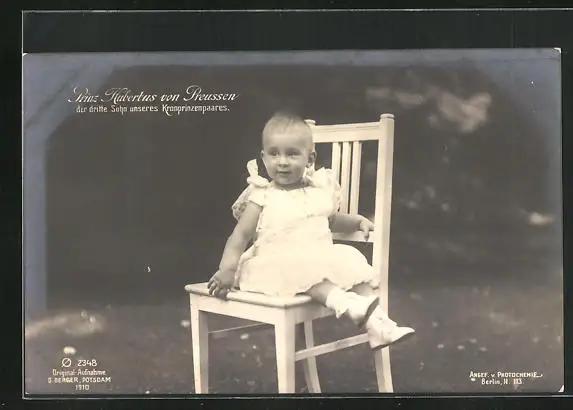 AK Prinz Hubertus als niedlicher Bube auf einem Stuhl im Garten sitzend