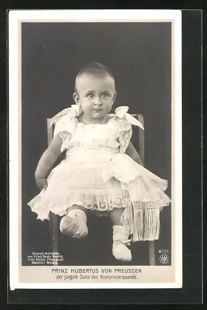 AK Prinz Hubertus als niedlicher kleiner Bube auf einem Stuhl sitzend