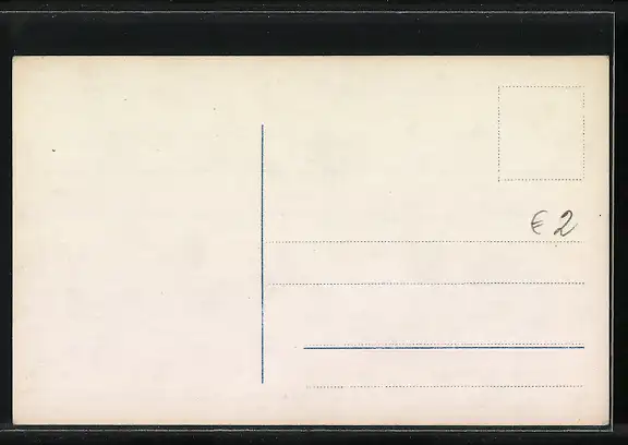 Personenbezogene Daten auf der Rückseite der Karte wurden durch blauen Textmarker unkenntlich gemacht. Die blauen Stellen sind auf die Vorderseite durchgeweicht und wirken sich negativ auf das Postkartenfoto aus