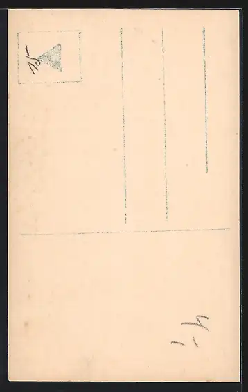 Personenbezogene Daten auf der Rückseite der Karte wurden durch blauen Textmarker unkenntlich gemacht. Die blauen Stellen sind auf die Vorderseite durchgeweicht und wirken sich negativ auf das Postkartenfoto aus