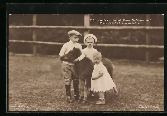 AK Prinz Louis Ferdinand, Prinz Hubertus und Prinz Friedrich von Preussen mit einem Pony