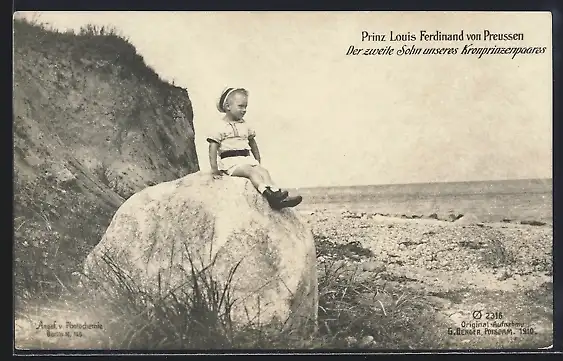 AK Prinz Louis Ferdinand von Preussen auf einem Findling