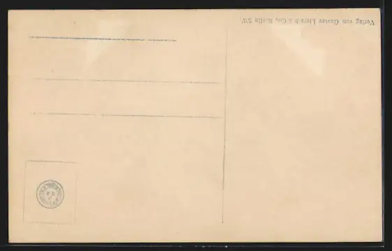 Personenbezogene Daten auf der Rückseite der Karte wurden durch blauen Textmarker unkenntlich gemacht. Die blauen Stellen sind auf die Vorderseite durchgeweicht und wirken sich negativ auf das Postkartenfoto aus