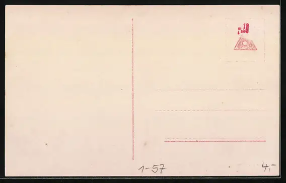 Personenbezogene Daten auf der Rückseite der Karte wurden durch blauen Textmarker unkenntlich gemacht. Die blauen Stellen sind auf die Vorderseite durchgeweicht und wirken sich negativ auf das Postkartenfoto aus