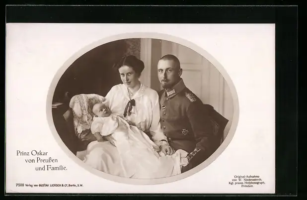 AK Prinz Oskar von Preussen mit Gemahlin und Taufkind