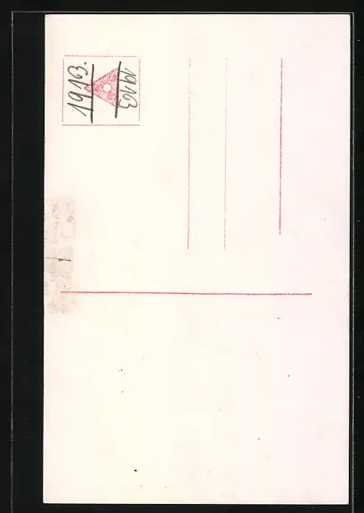 Personenbezogene Daten auf der Rückseite der Karte wurden durch blauen Textmarker unkenntlich gemacht. Die blauen Stellen sind auf die Vorderseite durchgeweicht und wirken sich negativ auf das Postkartenfoto aus