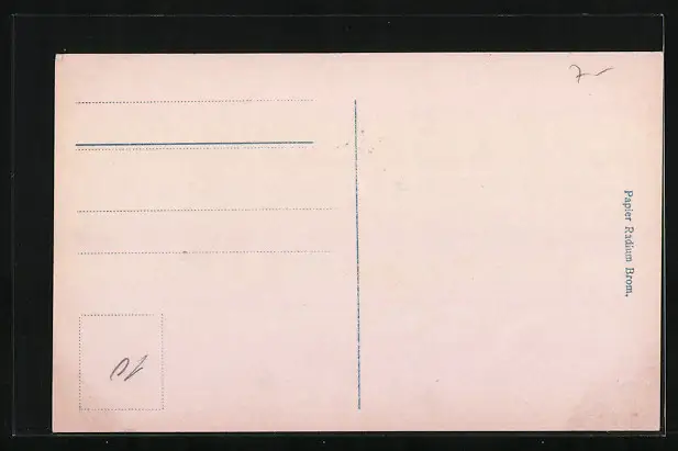 Personenbezogene Daten auf der Rückseite der Karte wurden durch blauen Textmarker unkenntlich gemacht. Die blauen Stellen sind auf die Vorderseite durchgeweicht und wirken sich negativ auf das Postkartenfoto aus