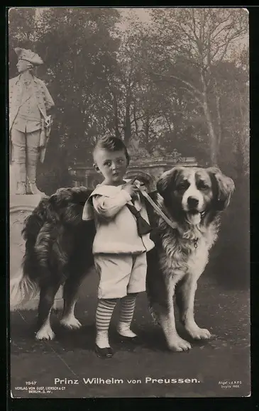 AK Prinz Wilhelm als kleiner Junge mit Bernhardiner