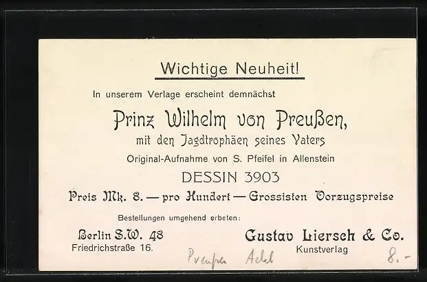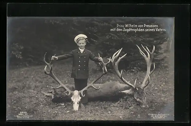 AK Prinz Wilhelm mit Jagdtrophäen seines Vaters