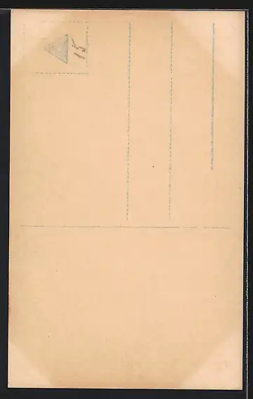 Personenbezogene Daten auf der Rückseite der Karte wurden durch blauen Textmarker unkenntlich gemacht. Die blauen Stellen sind auf die Vorderseite durchgeweicht und wirken sich negativ auf das Postkartenfoto aus