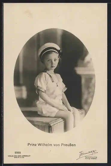 AK Prinz Wilhelm von Preussen auf einer Kiste sitzend