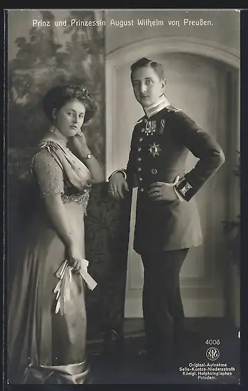 AK Prinz und Prinzessin August Wilhelm in Uniform und elegantem Kleid