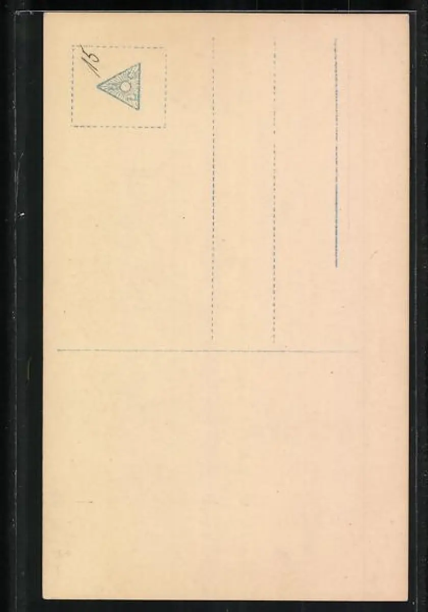 Personenbezogene Daten auf der Rückseite der Karte wurden durch blauen Textmarker unkenntlich gemacht. Die blauen Stellen sind auf die Vorderseite durchgeweicht und wirken sich negativ auf das Postkartenfoto aus