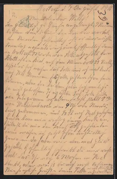 Personenbezogene Daten auf der Rückseite der Karte wurden durch blauen Textmarker unkenntlich gemacht. Die blauen Stellen sind auf die Vorderseite durchgeweicht und wirken sich negativ auf das Postkartenfoto aus
