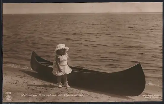 AK Prinzessin Alexandrine mit Boot am Ostseestrand