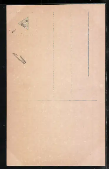 Personenbezogene Daten auf der Rückseite der Karte wurden durch blauen Textmarker unkenntlich gemacht. Die blauen Stellen sind auf die Vorderseite durchgeweicht und wirken sich negativ auf das Postkartenfoto aus