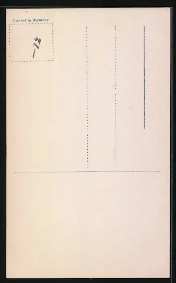 Personenbezogene Daten auf der Rückseite der Karte wurden durch blauen Textmarker unkenntlich gemacht. Die blauen Stellen sind auf die Vorderseite durchgeweicht und wirken sich negativ auf das Postkartenfoto aus