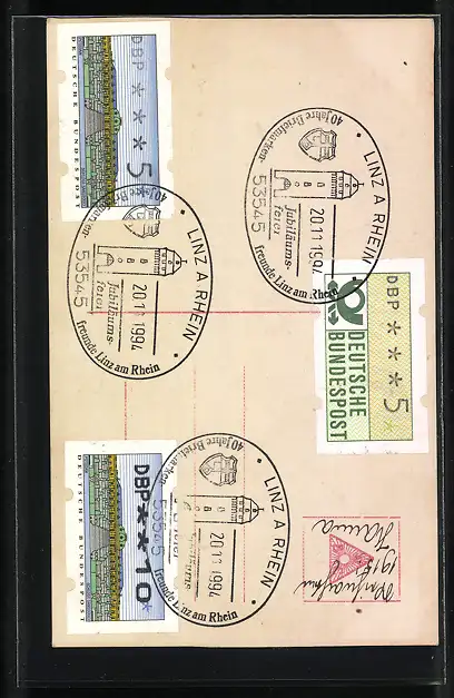 Personenbezogene Daten auf der Rückseite der Karte wurden durch blauen Textmarker unkenntlich gemacht. Die blauen Stellen sind auf die Vorderseite durchgeweicht und wirken sich negativ auf das Postkartenfoto aus
