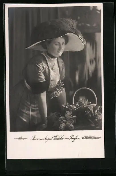AK Prinzessin August Wilhelm von Preussen mit grossem Federhut