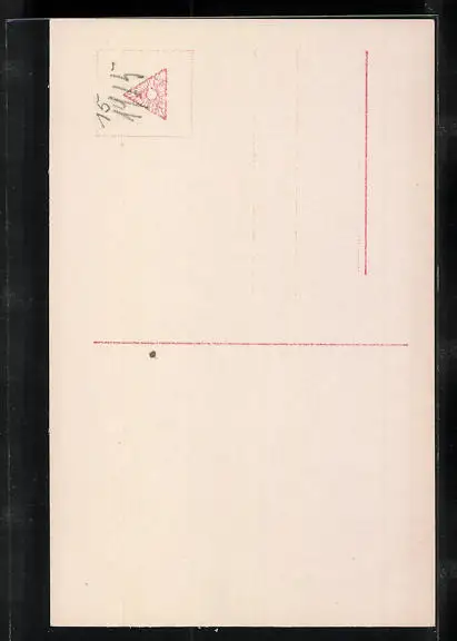 Personenbezogene Daten auf der Rückseite der Karte wurden durch blauen Textmarker unkenntlich gemacht. Die blauen Stellen sind auf die Vorderseite durchgeweicht und wirken sich negativ auf das Postkartenfoto aus