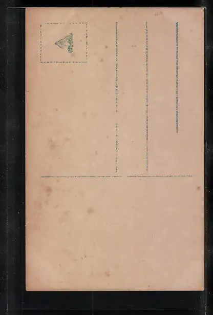 Personenbezogene Daten auf der Rückseite der Karte wurden durch blauen Textmarker unkenntlich gemacht. Die blauen Stellen sind auf die Vorderseite durchgeweicht und wirken sich negativ auf das Postkartenfoto aus