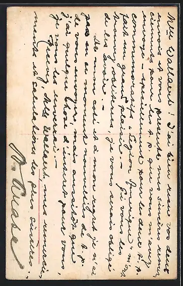 Personenbezogene Daten auf der Rückseite der Karte wurden durch blauen Textmarker unkenntlich gemacht. Die blauen Stellen sind auf die Vorderseite durchgeweicht und wirken sich negativ auf das Postkartenfoto aus