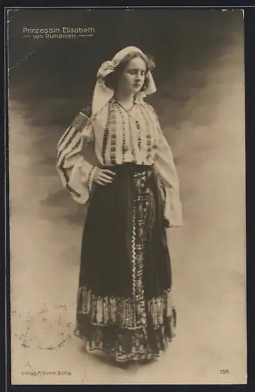 AK Prinzessin Elisabeth von Rumänien, Portrait in Tracht