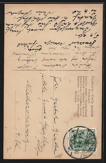 alte Ansichtskarte, gelaufen 1908, Stempelspur, Eckknick li. oben, guter Zustand