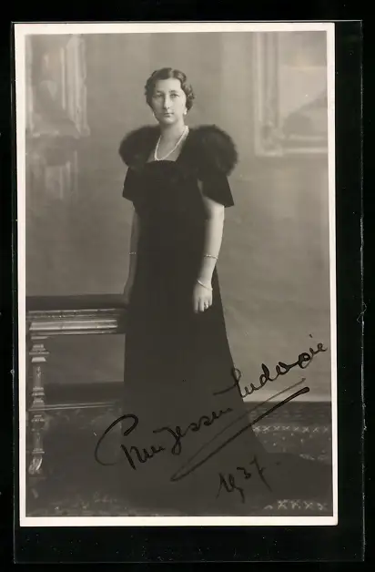 AK Prinzessin Eudoxia, Tinten-Autograph Prinz August Wilhelm von Preussen 1937