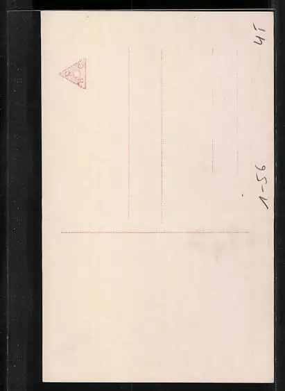 Personenbezogene Daten auf der Rückseite der Karte wurden durch blauen Textmarker unkenntlich gemacht. Die blauen Stellen sind auf die Vorderseite durchgeweicht und wirken sich negativ auf das Postkartenfoto aus