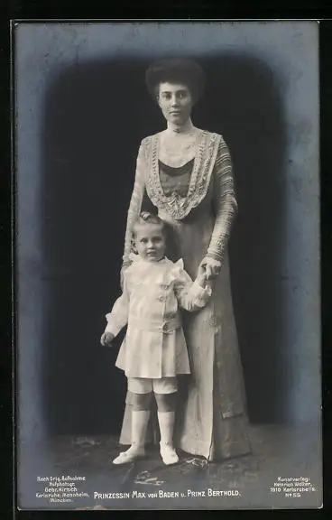 AK Prinzessin Max von Baden mit Prinz Berthold portraitiert