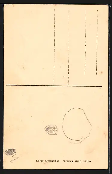Personenbezogene Daten auf der Rückseite der Karte wurden durch blauen Textmarker unkenntlich gemacht. Die blauen Stellen sind auf die Vorderseite durchgeweicht und wirken sich negativ auf das Postkartenfoto aus
