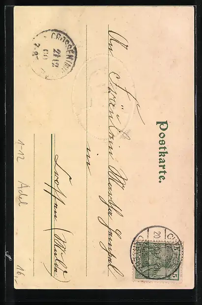 alte Ansichtskarte, gelaufen 1900, guter Zustand