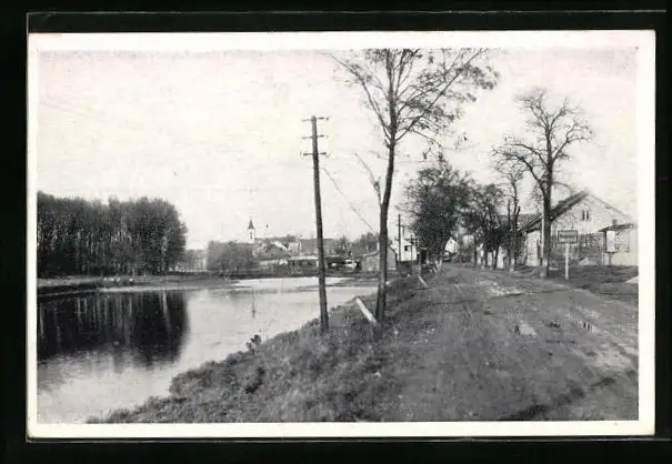 AK Probstdorf, Strassenpartie am Ortseingang, Flusspartie