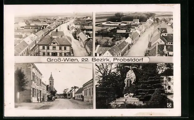 AK Probstdorf, Strassenpartie aus der Vogelschau, Blick zur Kirche