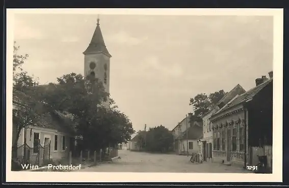 AK Probstdorf, Strassenpartie mit Kirchturm