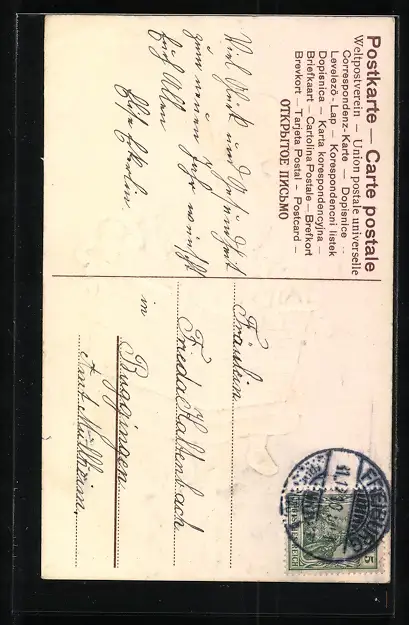 alte Ansichtskarte, gelaufen, Eckknick unten links, Stempelspur, guter Zustand