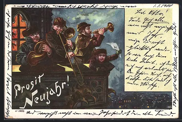 AK Prosit Neujahr, Musikanten auf einem Balkon
