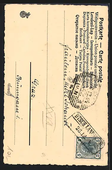 alte Ansichtskarte, gelaufen 1904, Eckknick oben re., guter Zustand