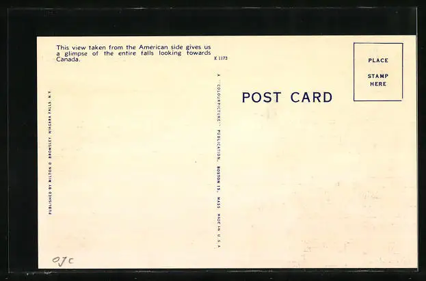 Personenbezogene Daten auf der Rückseite der Karte wurden durch blauen Textmarker unkenntlich gemacht. Die blauen Stellen sind auf die Vorderseite durchgeweicht und wirken sich negativ auf das Postkartenfoto aus