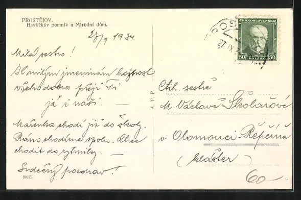 AK Prostejov, Havlickuv pomnik a Narodni dum